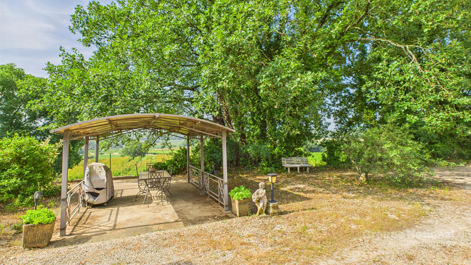 Située dans un cadre privilégié, cette maison de plain-pied de110 m² habitables sur un terrain de 1160 m² constructibles et piscinable.